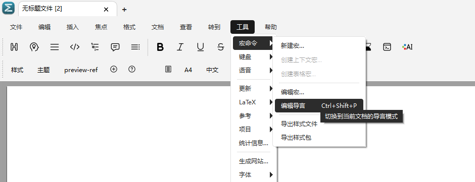 - 打开导言区. 可以如下图所示, 也可以直接按