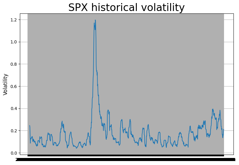 Now let’s calculate the volatility of S&P500 using 25-day rolling time windows.